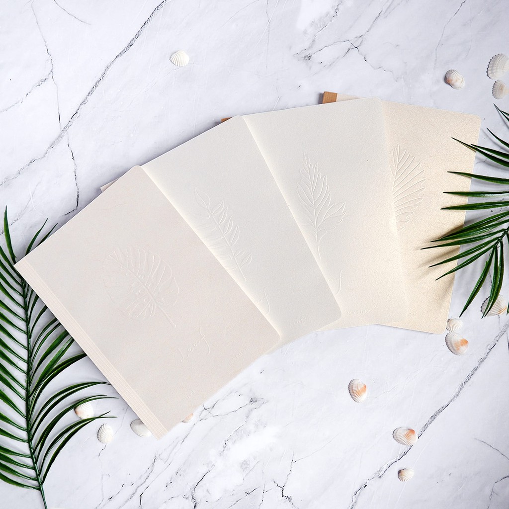 Kesenangan menulis semakin bertambah di atas buku ini. Tekstur dan kesan unik pada sampulnya berasal dari bahan kertas Jasmine, yang umumnya ditemukan pada kartu undangan dan kreasi DIY. Permukaan sampul yang elegan dan sedikit berkilauan ini dihias lagi dengan cetakan timbul bergambar daun, yang bisa kamu pilih dari 4 variasi yang ada. Pilih dari 2 jenis isi halaman yang paling cocok untukmu: bergaris biasa atau kotak-kotak.