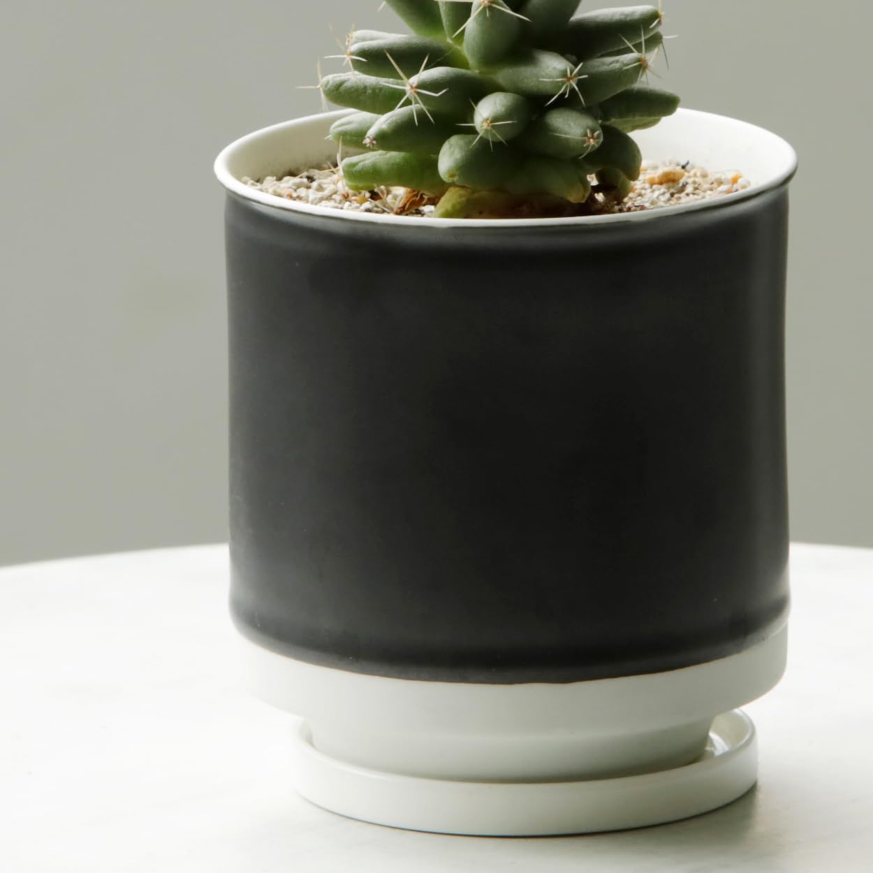 Leaf88 Сделано в Японии Цветочный горшок с блюдцем 10,5х11,5см Нет. 3.5 Посуда Хасами (черный х белый)