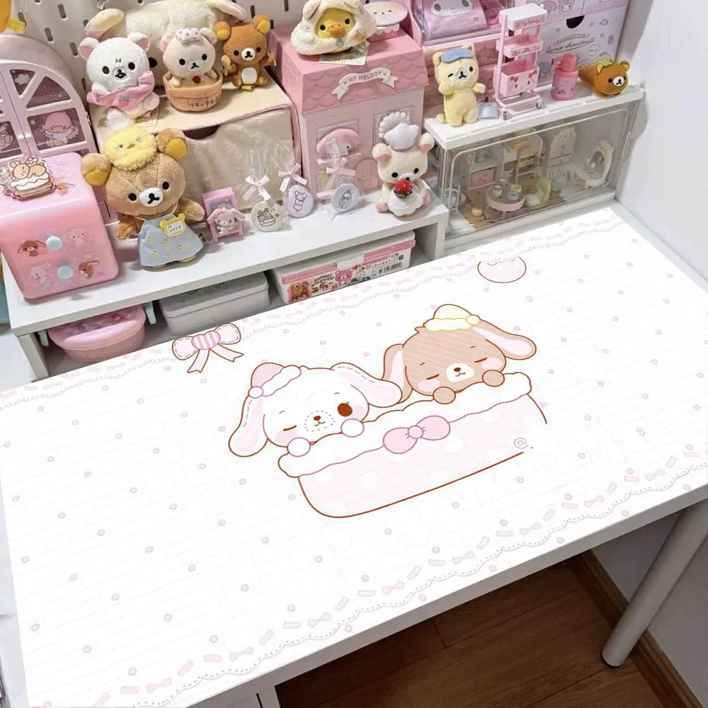 Leather Desk Pad Protector Sweet Rabbit Cake Pink Bunny Mouse Pad Office Desk Mat Waterproof Non-Slip PU Desk Blotter Pad