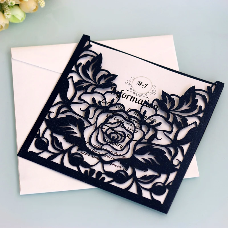 50pcs Hollow Flower Laser Cut Wedding Invitations Card Business Greeting Cards Customize Wedding Decoration Party Favor Supplies