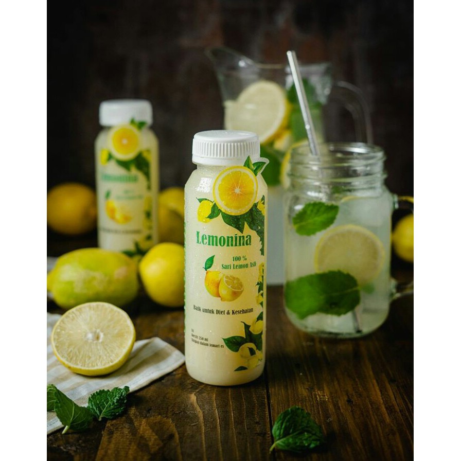 Satu botol lemonina 250ml dihasilkan dari 1 - 1,5 kg lemon asli tanpa campuran air, pengawet, atau pewarna buatan.