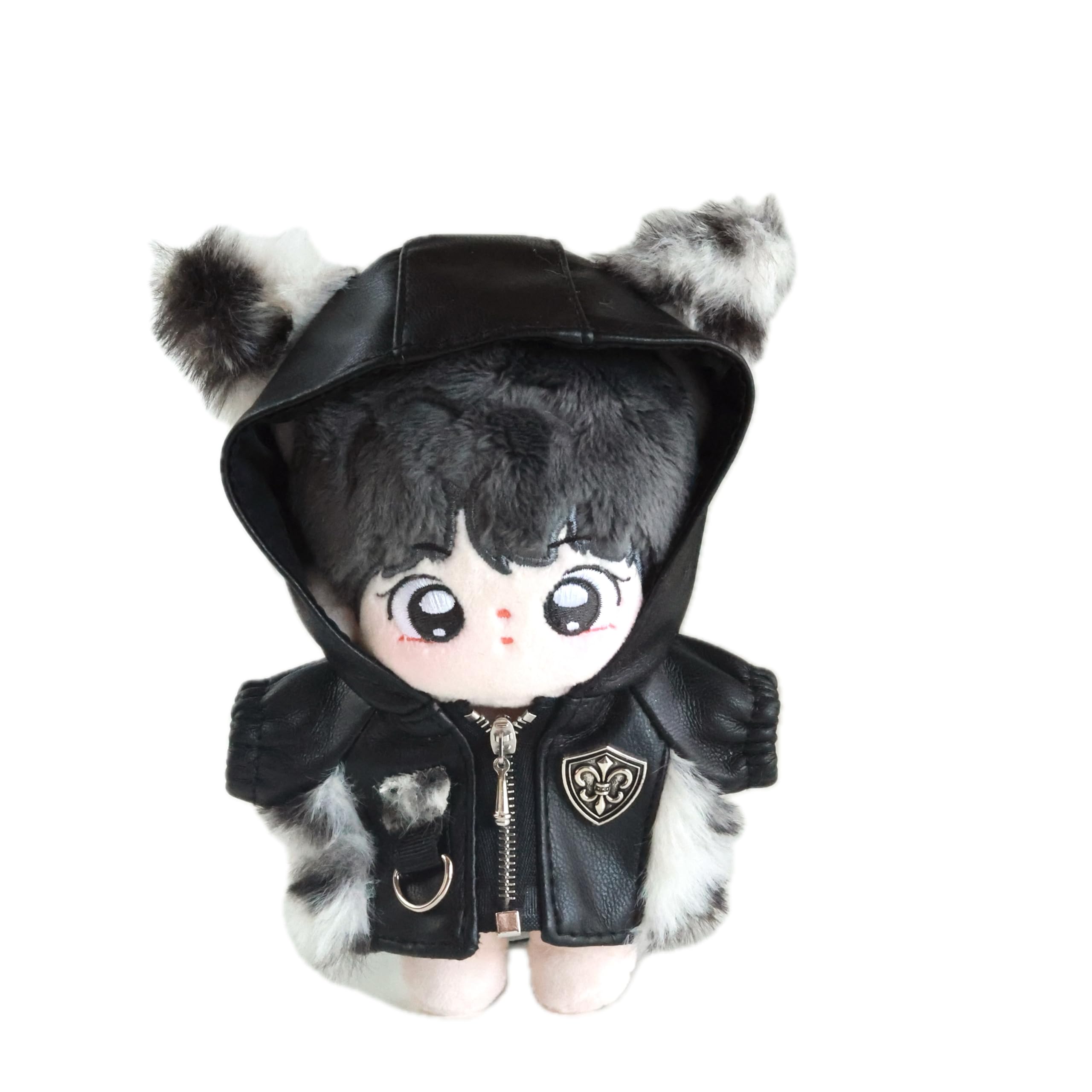 Lemonnui 10 см Плюшевая одежда Наряжать Чиби Плюшевая Куртка Кожзам Коричневый Крутой Плюш Активность Любимый Плюш Хлопковая Кукла Чиби Плюшевая Одежда (черный)