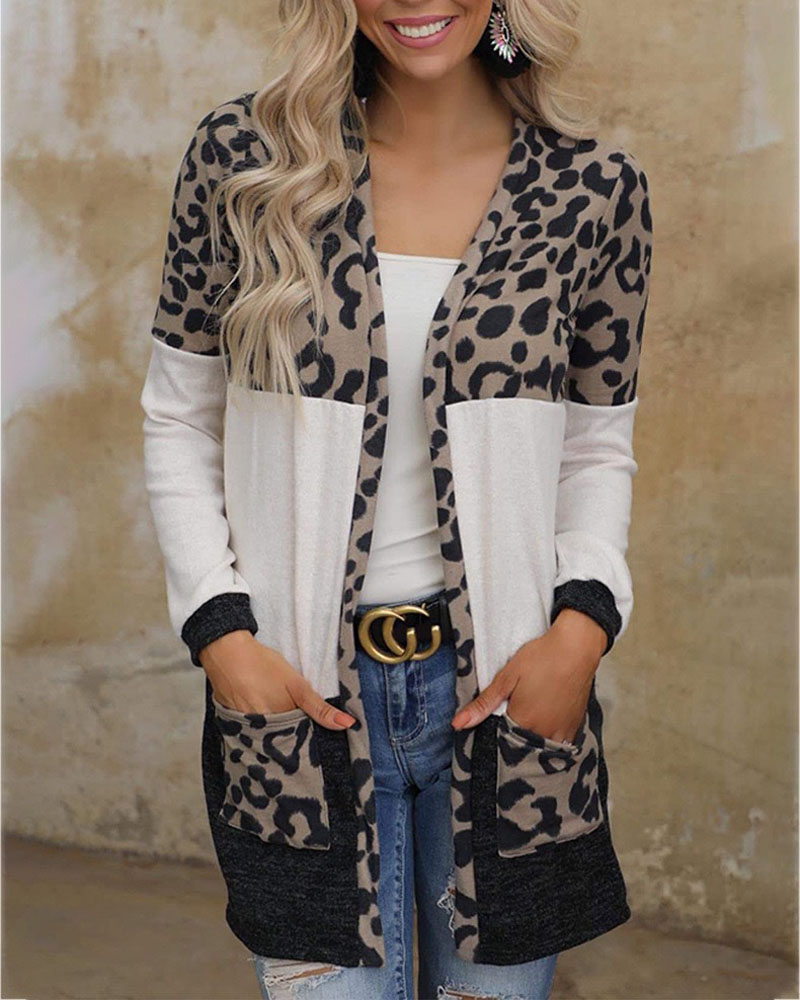 Leopard Print Long Sleeve Open Front Cardigan, Khaki