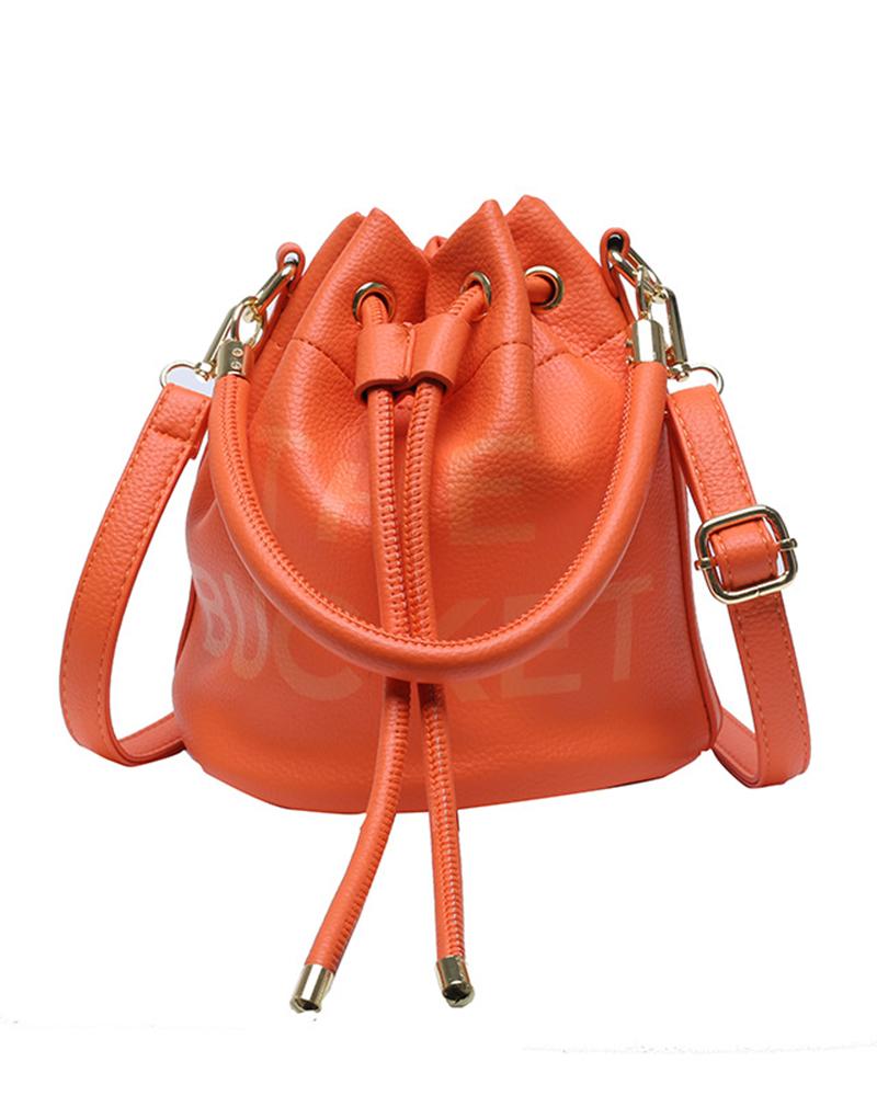 Letter Pattern Drawstring Bucket Bag, Orange