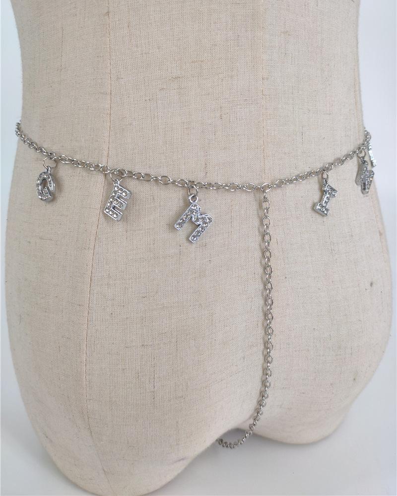 Letter Pattern Rhinestone Decor Waist Chian, Style2