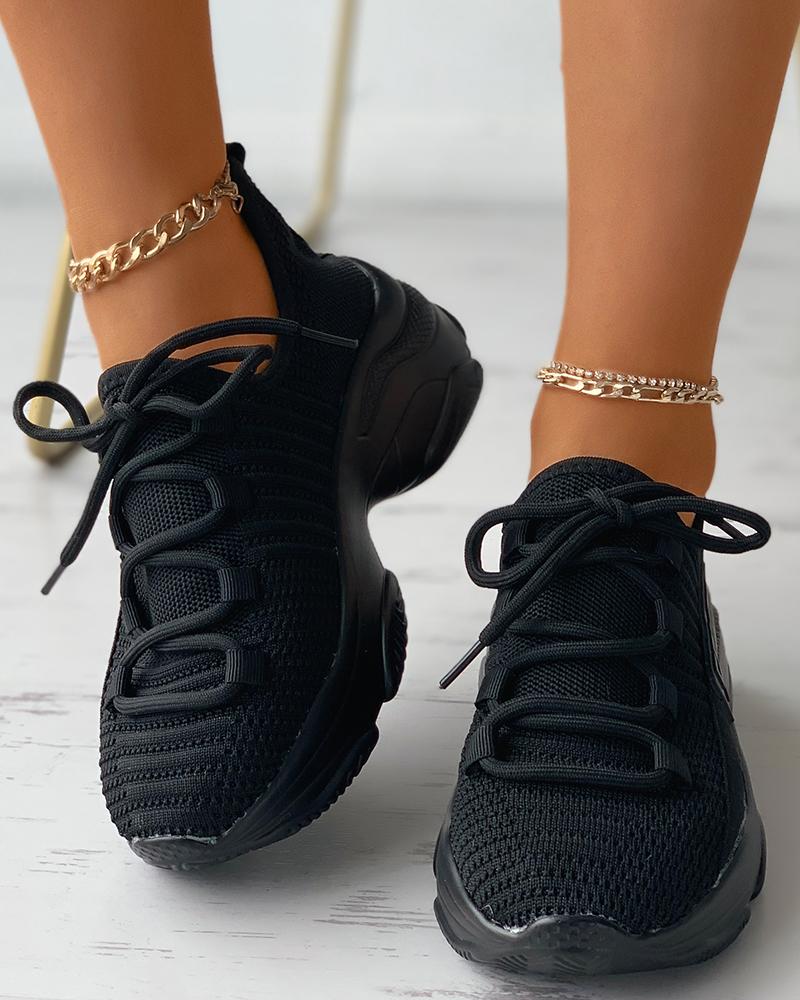 Letter Pattern Rhinestone Lace-up Muffin Sneakers, Black