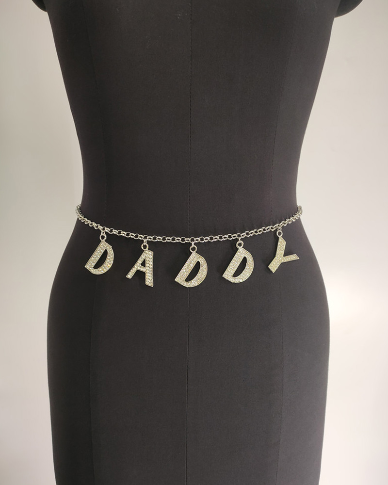 Letter Pattern Rhinestone Waist Chain, Style2