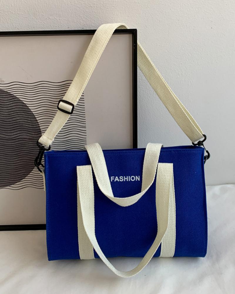 Letter Pattern Square Canvas Tote Bags, Blue