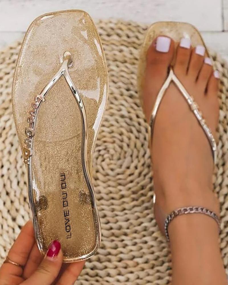 Letter Pattern Toe Post Flip Flops, Gold