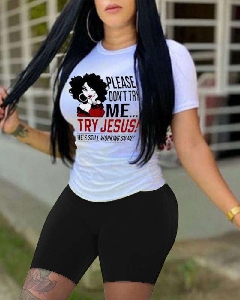 Letter Print Short Sleeve Top & Shorts Set, Black