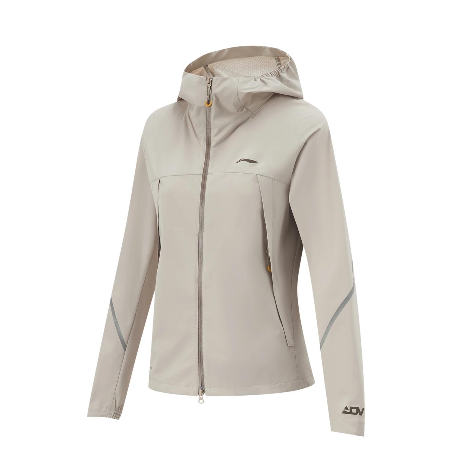 Li Ning Беговая серия Однотонная ветровка с капюшоном на молнии и светоотражающими элементами Женская верхняя одежда Пыльно-серая AFDU354-1