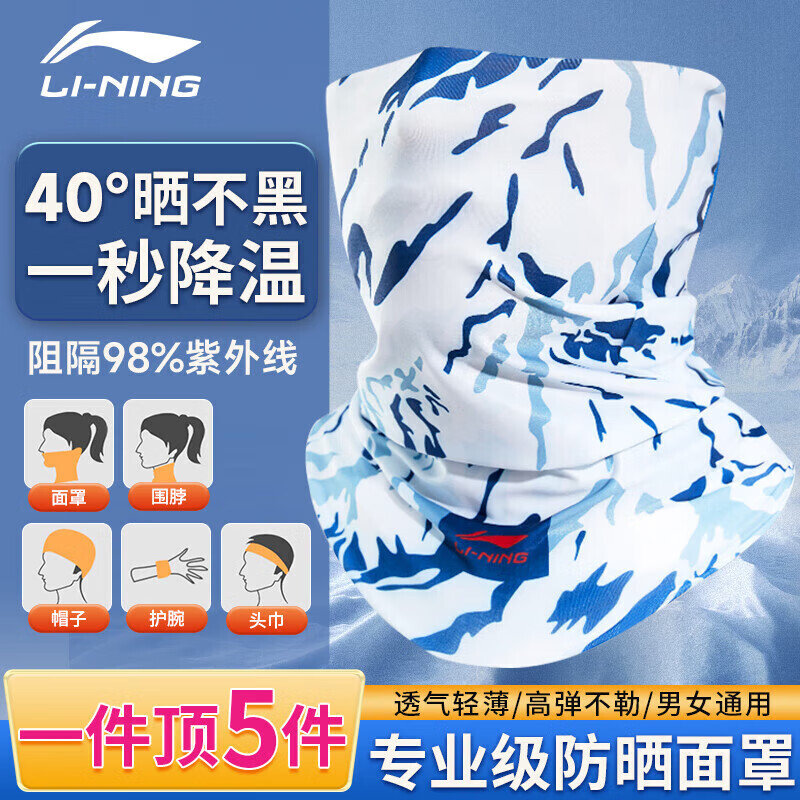 Li Ning (LI-NING) Защитная велосипедная маска от солнца, мужская волшебная повязка на голову из ледяного шелка, на открытом воздухе, для пешего туризма, альпинизма, рыбалки, летний ветрозащитный шарф