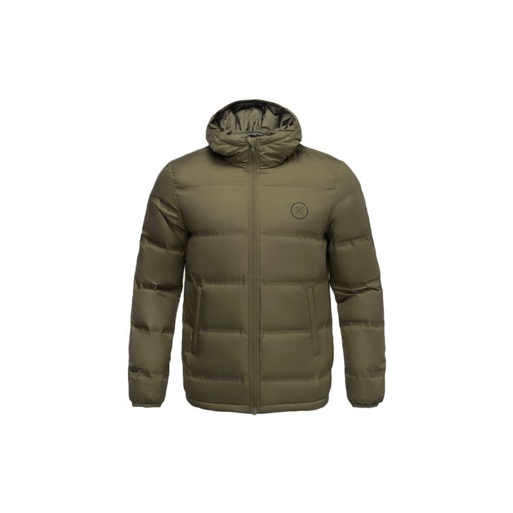Li Ning Серия Уэйда Свободная короткая пуховая куртка с капюшоном Мужская верхняя одежда Темно-мохово-зеленый AYMQ043-2 M