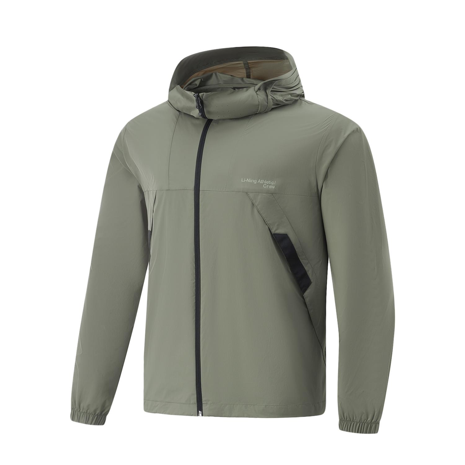 Li-Ning Серия Urban Outdoor Однотонная толстовка с капюшоном на молнии Свободная Дышащая Защита от УФ-лучей Защита от солнца Куртка Мужские куртки Чайно-зеленый AFDV461-6 S