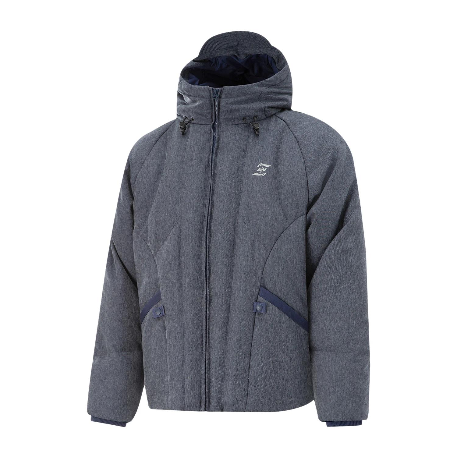 Li Ning X Nine Point Nine Коллаборация Спортивный Стиль Жизни Серия Сшивная Толстовка с Капюшоном на Молнии Дышащая Универсальная Короткая Пуховая Куртка Мужская Куртка AYMU651-1
