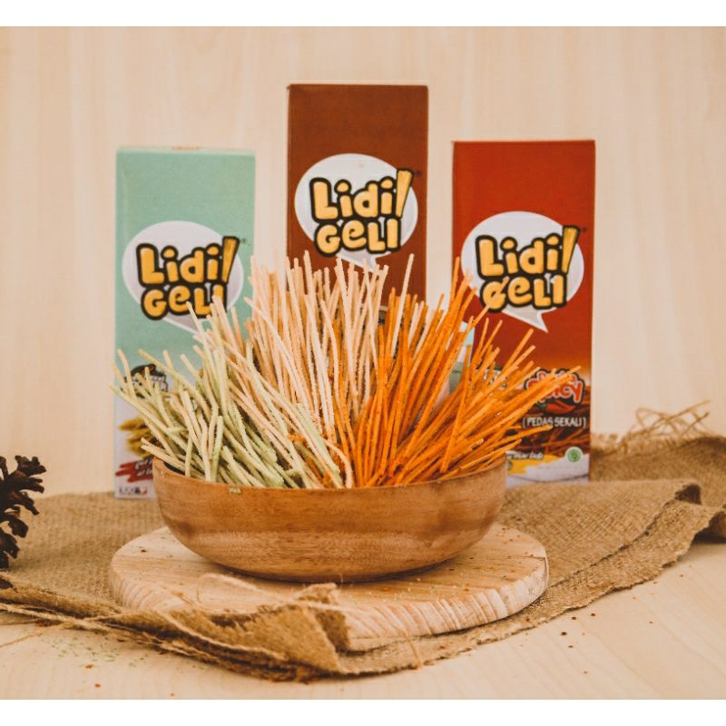 Dikenal sebagai cemilan tradisional tempo doeloe, mie lidi disukai berbagai kalangan dan profesi dari anak-anak sampai dewasa. Lidi Geli terbuat dari bahan pilihan dengan potongan mie lidi yang renyah untuk memberikan pengalaman baru dalam setiap gigitannya. Lidi Geli diproses secara higienis dan modern tanpa bahan pengawet sehingga menghasilkan mie lidi yang sempurna, renyah dan lezat.