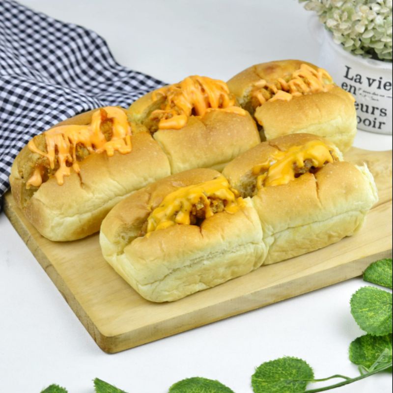 5 Pcs Roti dalam 1 Box dengan isian ayam di tambah Saus Mayo dan Saus Cheese
