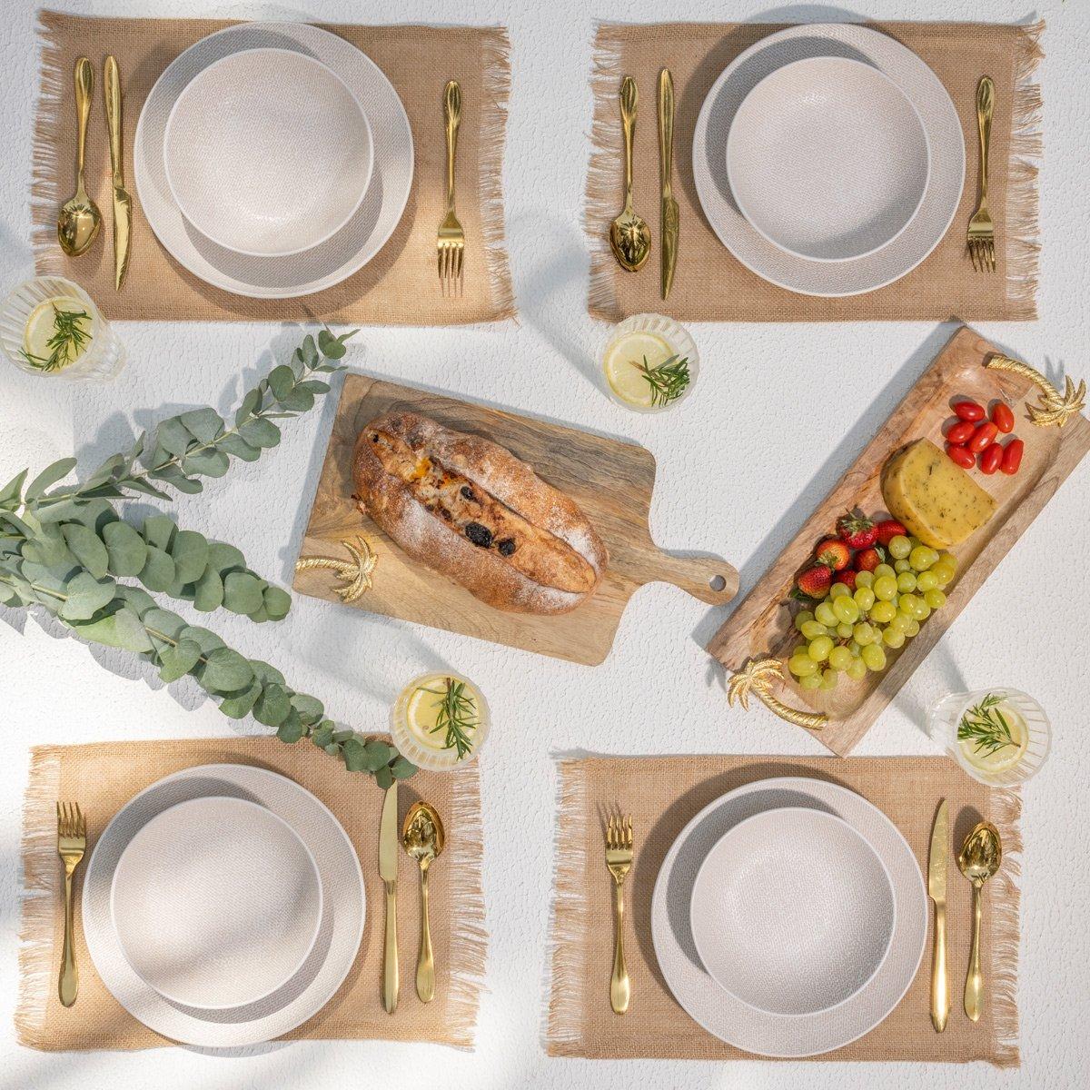 Linen dinner set 18pcs white