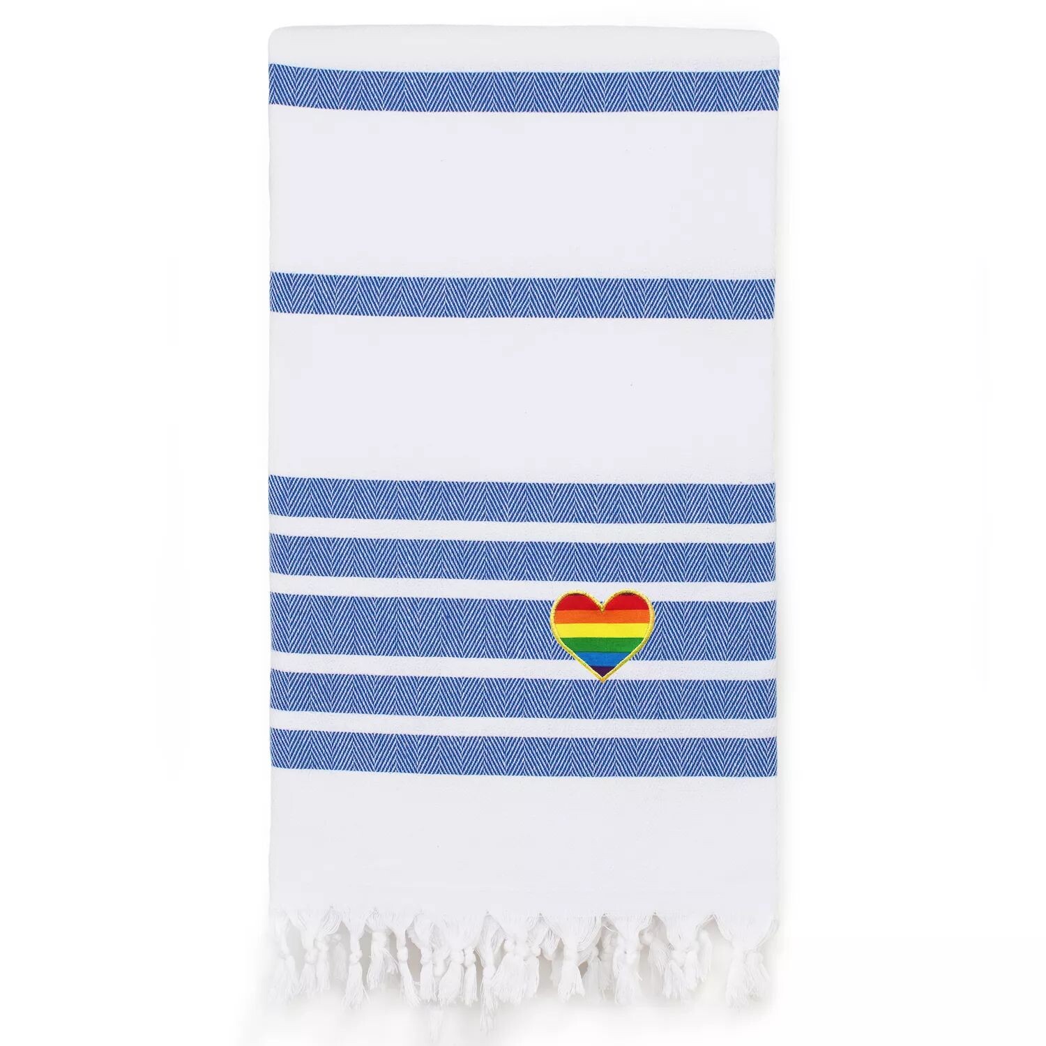 Linum Текстиль для дома, турецкое хлопковое пляжное полотенце с узором «елочка» и радужным сердцем, бежевый/белый