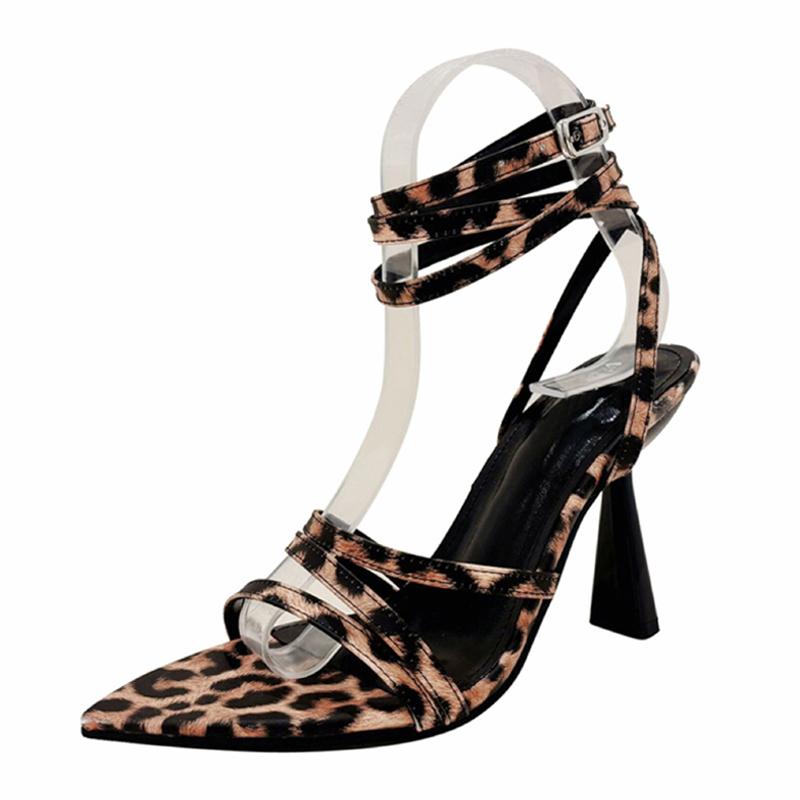 Liyke Новые Сексуальные Сандалии с Леопардовым Принтом Женские Летние Остроносые с Открытым Носком Ремешок с Пряжкой Гладиаторские Высокие Каблуки Вечерние Туфли для Платья 41