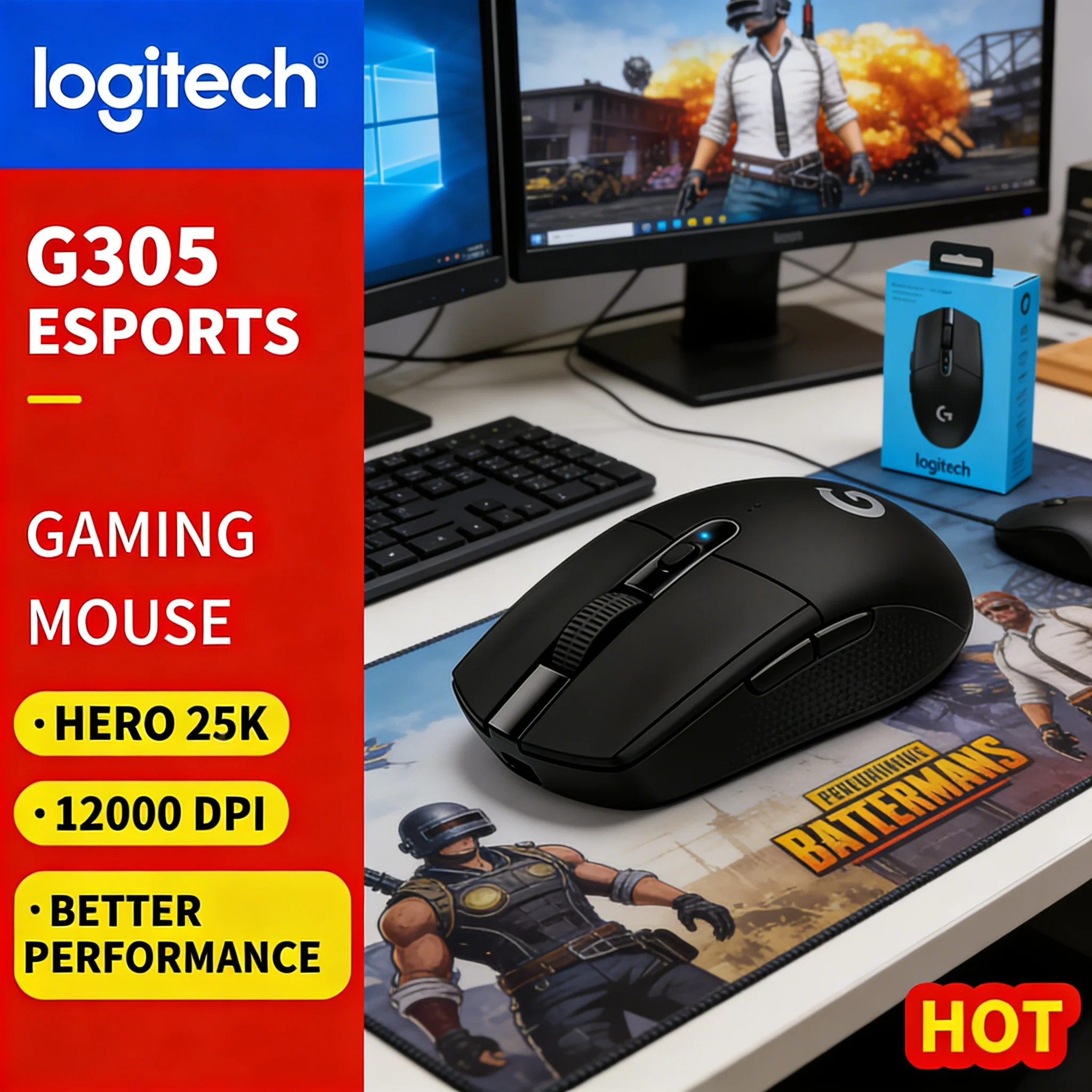 Logitech G305 Wireless Gaming Mouse 12000 DPI HERO Sensor 6 Custom Buttons Ergonomic Curved Design for PC