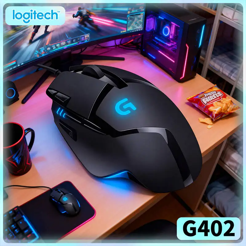 Logitech G402 Gaming Mouse Fusion Engine Tech 8 Buttons 32-Bit Processor 500+ IPS 4 DPI Modes for PC Laptop