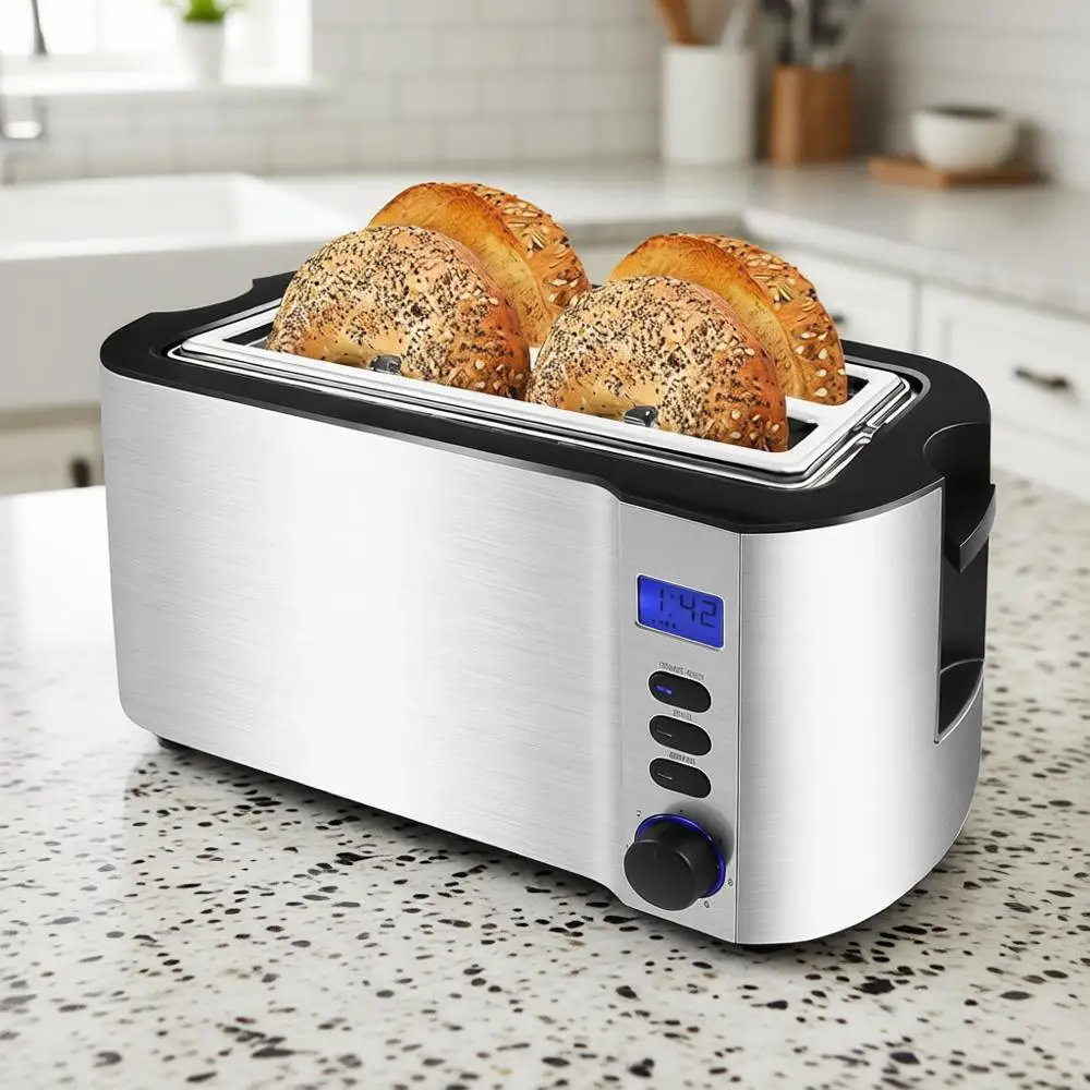 Long Slot 4 Slice Toaster, Countdown Timer, 6 Toast Setting, Rost, Cancel Function, Built-in Warming Rack, Extra Wide Slots or B