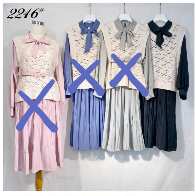 Longress dengan bahan Woolpeach prisket + outer rompi bahan rajut halus.