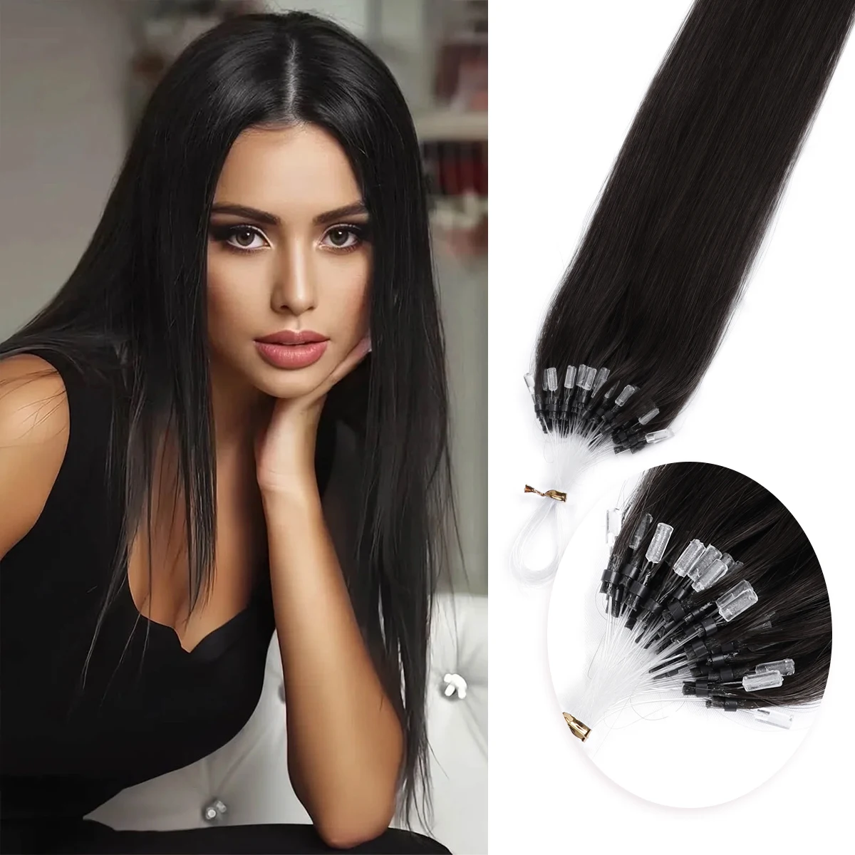 Loop Micro Ring Hair Extensions Human Hair Fusion Hair Machine-Remy Natural Straight Keration Fishing Line Extension 12-24inch