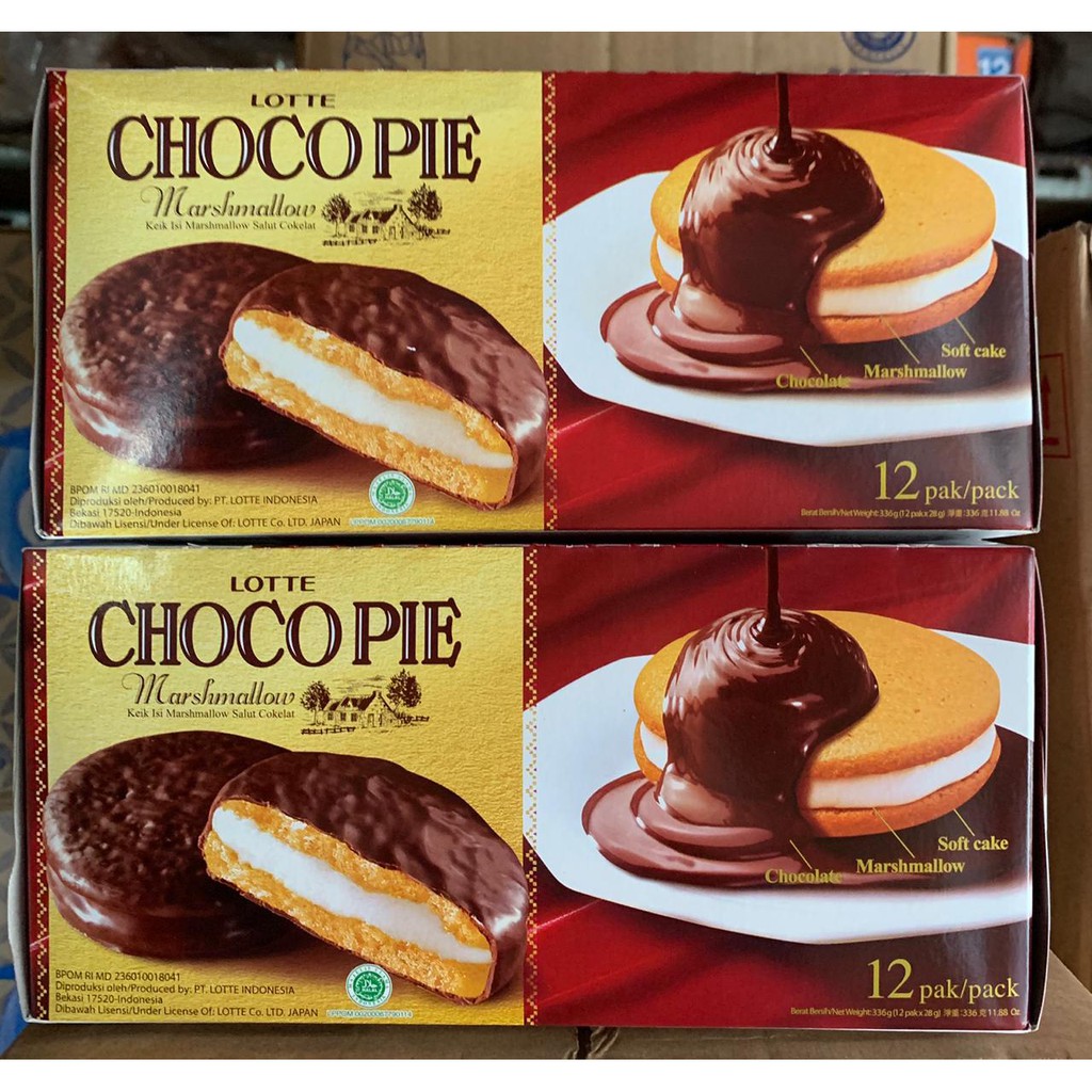 Lotte Choco Pie Marshmallow 1 Box isi 12Pcs, 1 pcs 28 gram, Harga yang tertera adalah harga per box