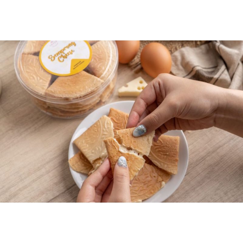 Semprong Cheese. Perpaduan semprong yang renyah dengan keju mozzarella dan Cheddar yang lezat. Hmmm... sangat sangat meleleh di mulut, pastinya super duper yummy. Kriuk diuar, lumer di dalam. Yang terpenting tidak bikin eneg.