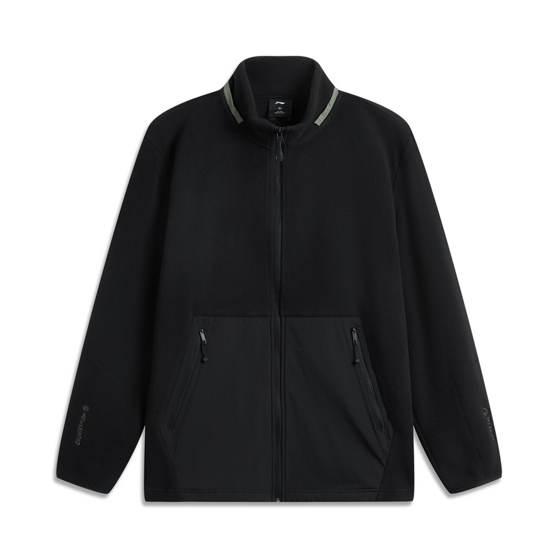 Толстовка с воротником-стойкой на молнии, утепленная флисовая, унисекс черная LiNing