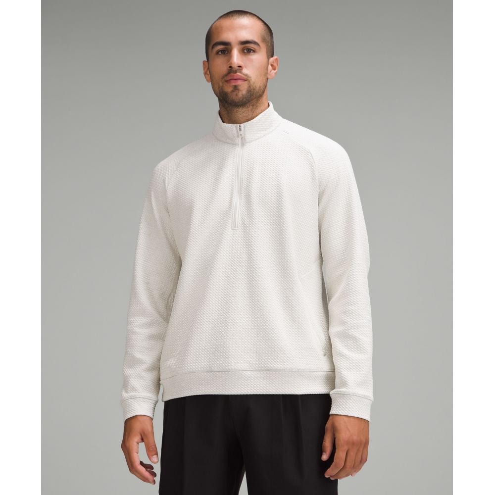 Lululemon Текстурированный двойной трикотажный хлопок с застежкой-молнией на половину длины, меланж, костяной черный XXL