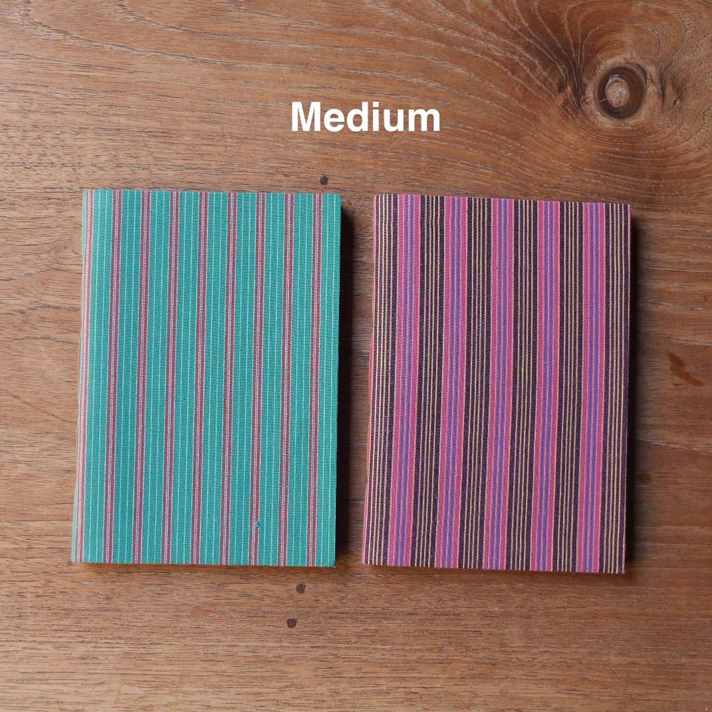 Notebook berbagai ukuran dengan cover kain lurik.