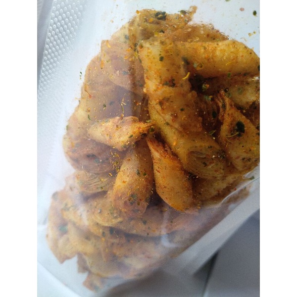 Cemilan kriuk dengan rasa pedas daun jeruk.