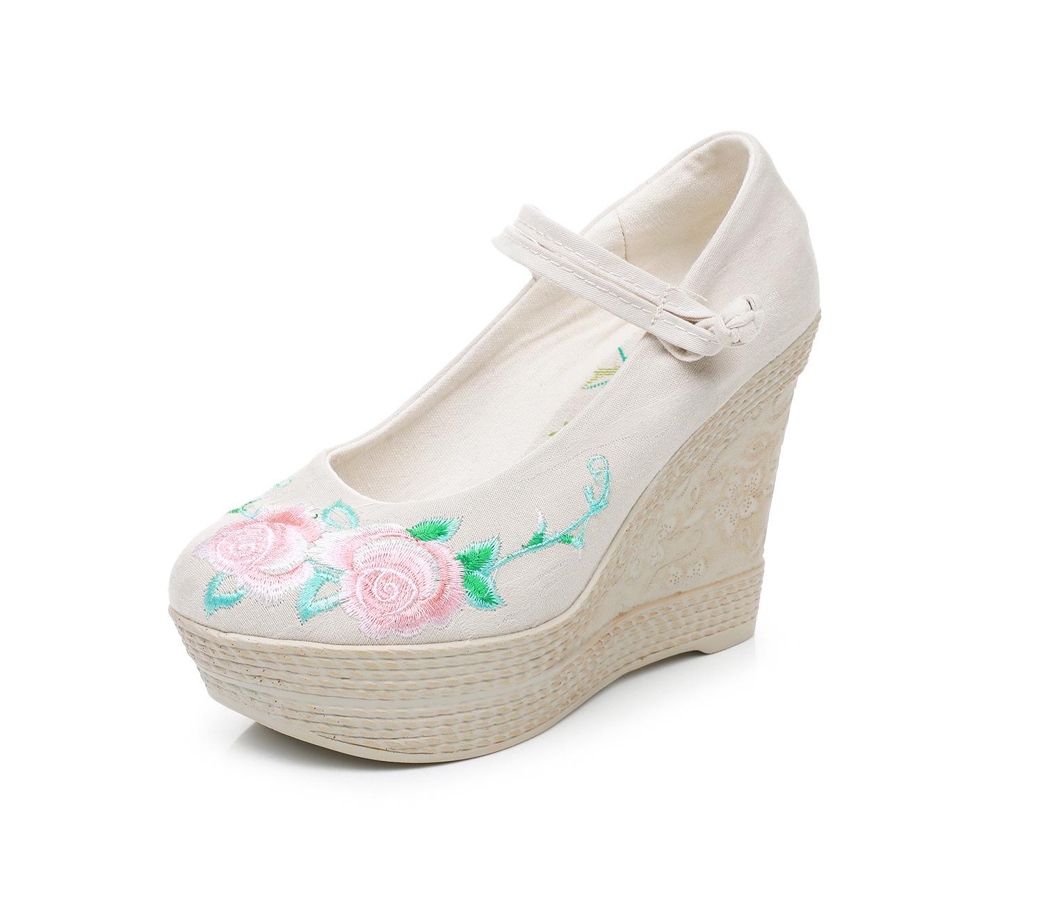 Lutai Xinchun Вышитые туфли на высоком каблуке, клиновидной платформе, женские, этнический стиль, тканевые туфли в старом пекинском стиле 35