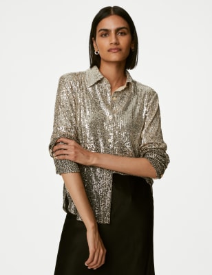 This all-over sequin shirt can be dressed up or down for effortless day-to-night looks. Easy regular fit design, with a smart collared neck and long sleeves. Finished with a secure button fastening.n M&S Collection: easy-to-wear wardrobe staples that combine classic and contemporary styles.