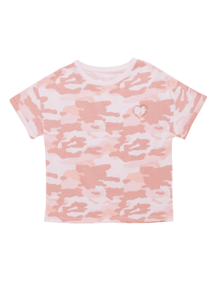 M&S Collection Camiseta 100% algodón de camuflaje (6-16 años) - Pink Mix, Pink Mix
