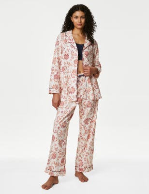 This floral pyjama set is made from brushed pure cotton for an irresistibly soft feel. Comfy regular fit. Button-up shirt features a relaxed open collar and a chest pocket. The bottoms have an elasticated waist for stretchy comfort. n M&S Collection: versatile styles in modern shapes with unique and playful details.
