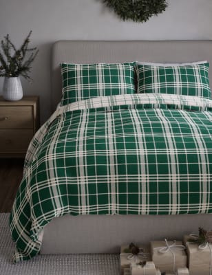 M&S Collection Fleece Checked Bedding Set - Green Mix, Green Mix