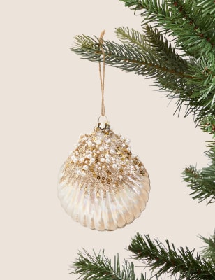 M&S Collection Glass Jewelled Hanging Shell Decoration - Champagne, Champagne