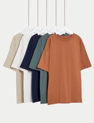 Stock up on their wardrobe basics with this handy pack of pure cotton t-shirts. They're made in a comfy regular fit, with a round neck and breezy short sleeves. The set of five includes a mix of versatile block colours.