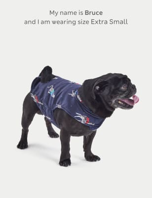 Get your furry friend in on the fun with this playful pet jumper. Crafted with soft fabric and pet-safe riptape closures, it fits comfortably under your pet's neck and over their tummy, ensuring a secure and cosy fit. This adorable design features a whimsical pattern of cute animals wearing woolly scarves, matching perfectly with our adult pyjamas.