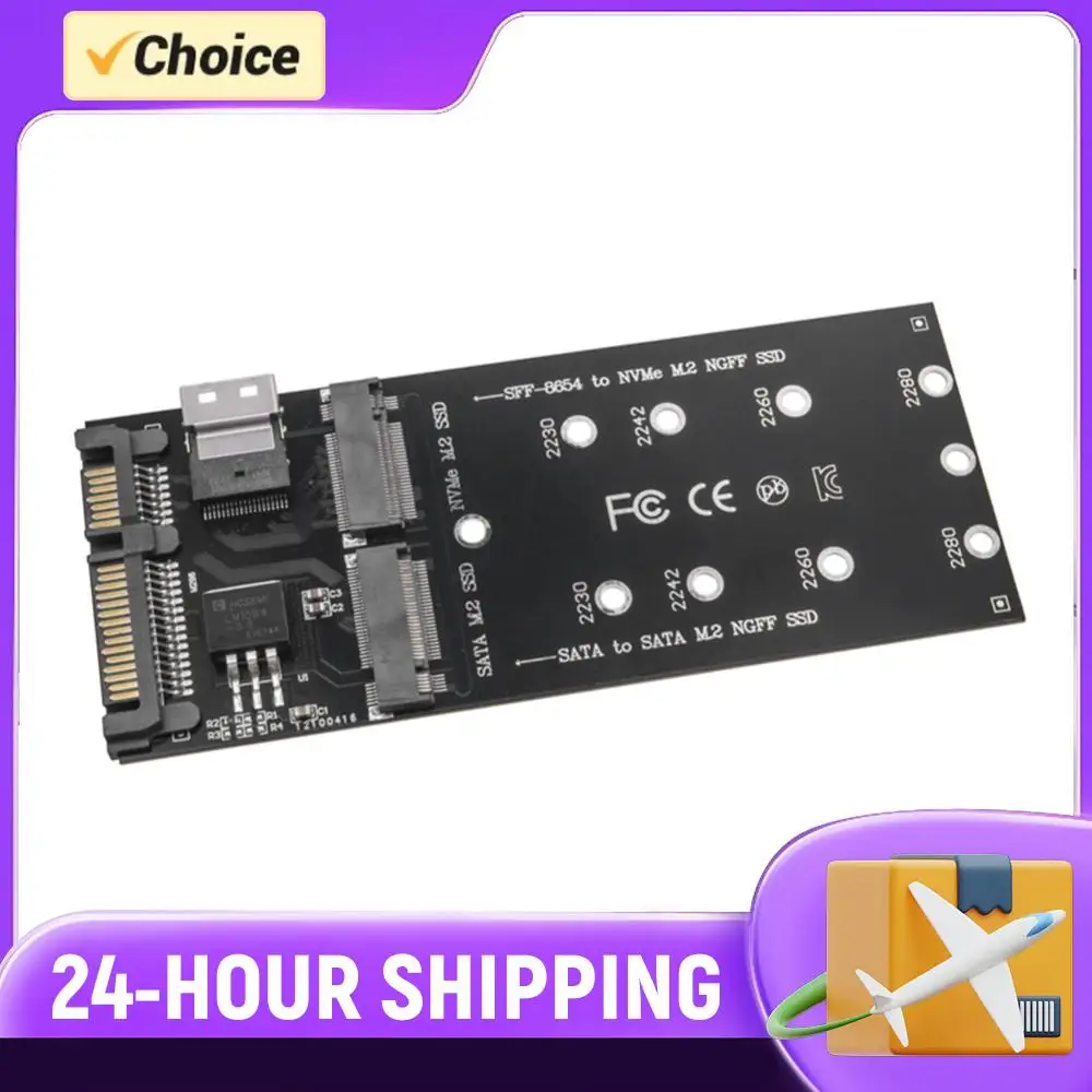 M.2 To SATA Adapter SFF-8654 To M2 NVME SSD 2 in 1 Combo Adapter Converter Riser Board Fit for PC Desktop Mainboard