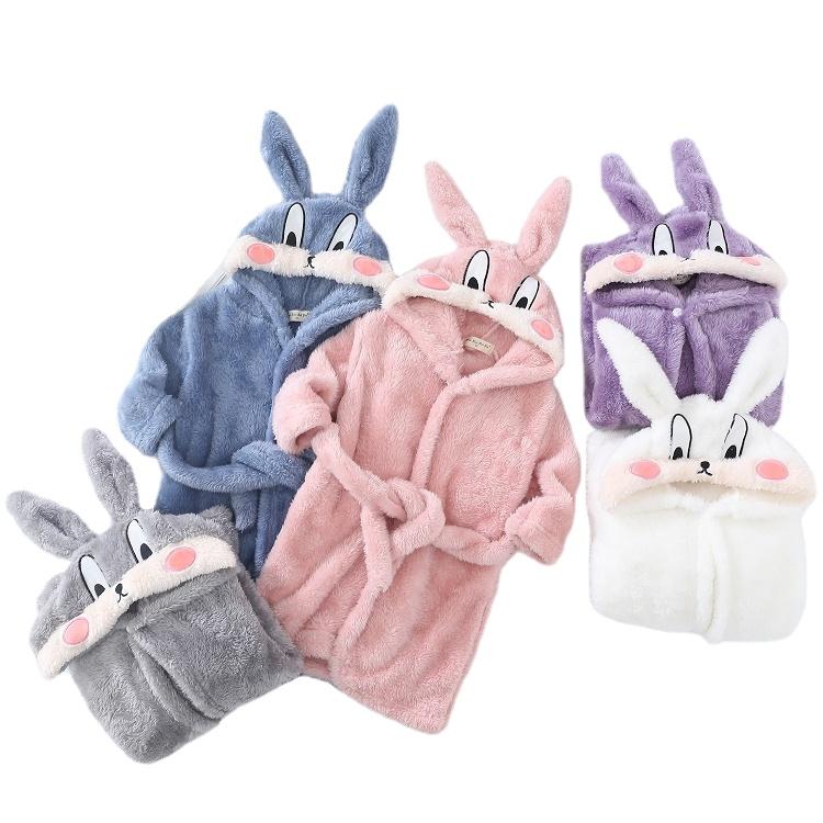 M1290 Зимние фланелевые толстые халаты, бархатная пижама, ночная рубашка с капюшоном и кроликом для детей