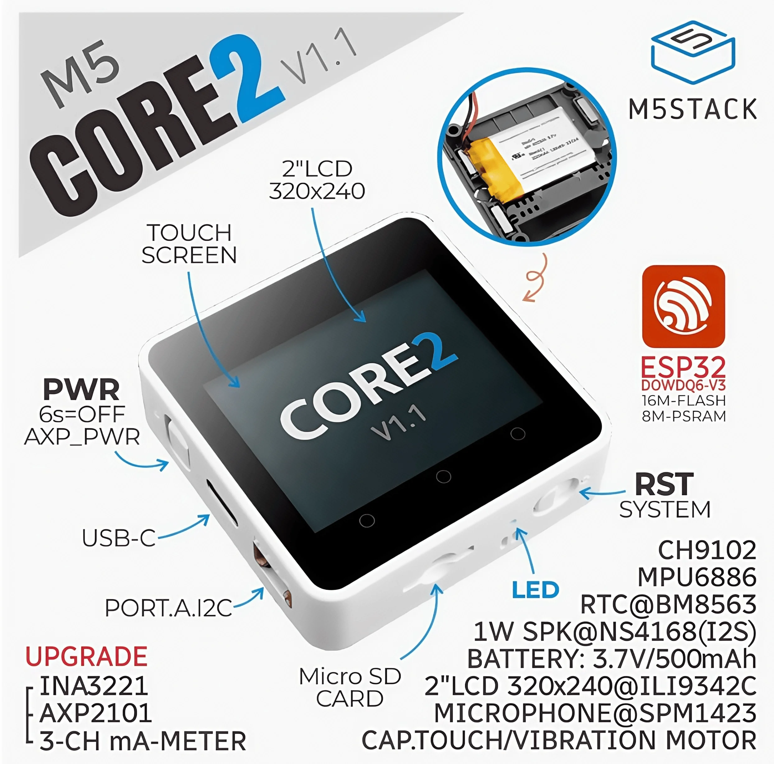 M5Stack Core2 v1.1 ESP32 Touch Screen IoT Development Kit Graphical Programming Master Control