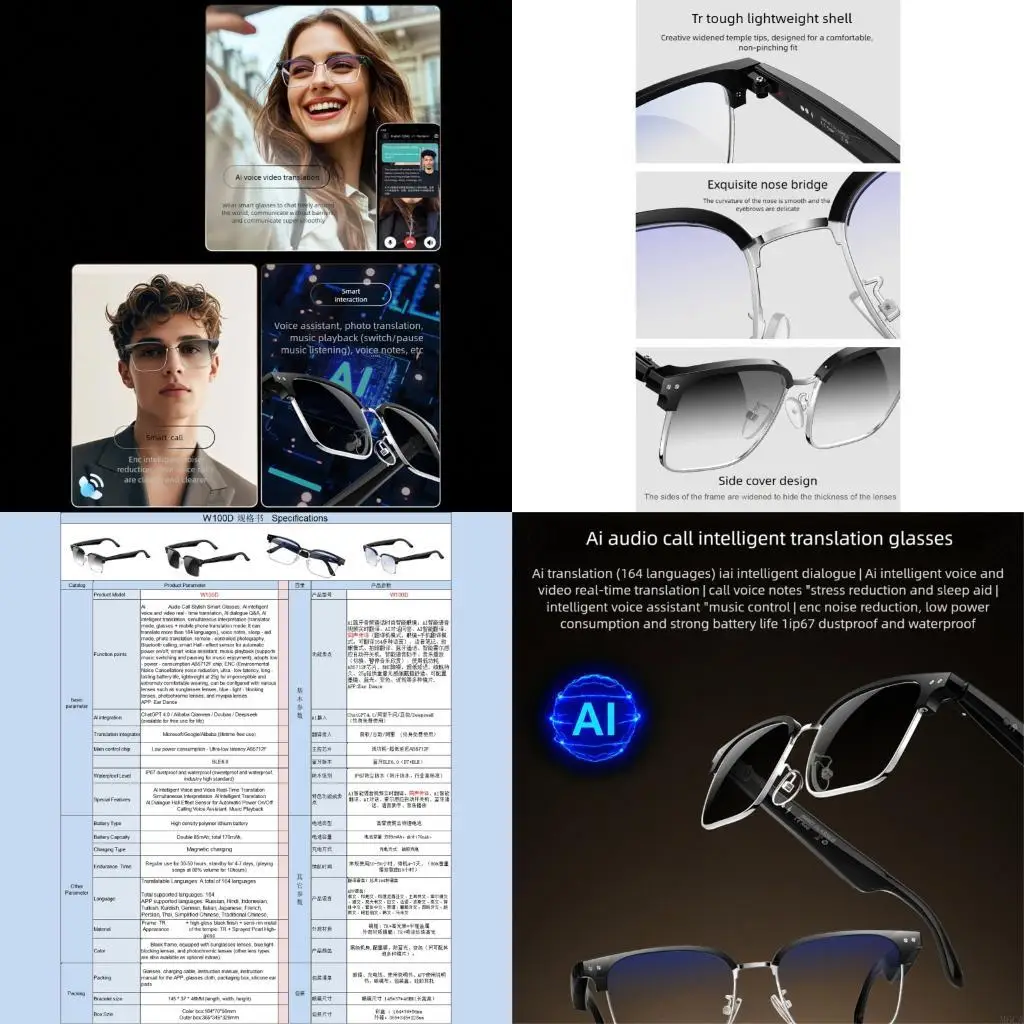 M6CA AI Language Translator Glasses BLE6.0 Connection Voice Control Lightweight Design For Multilingual Communication Meeting