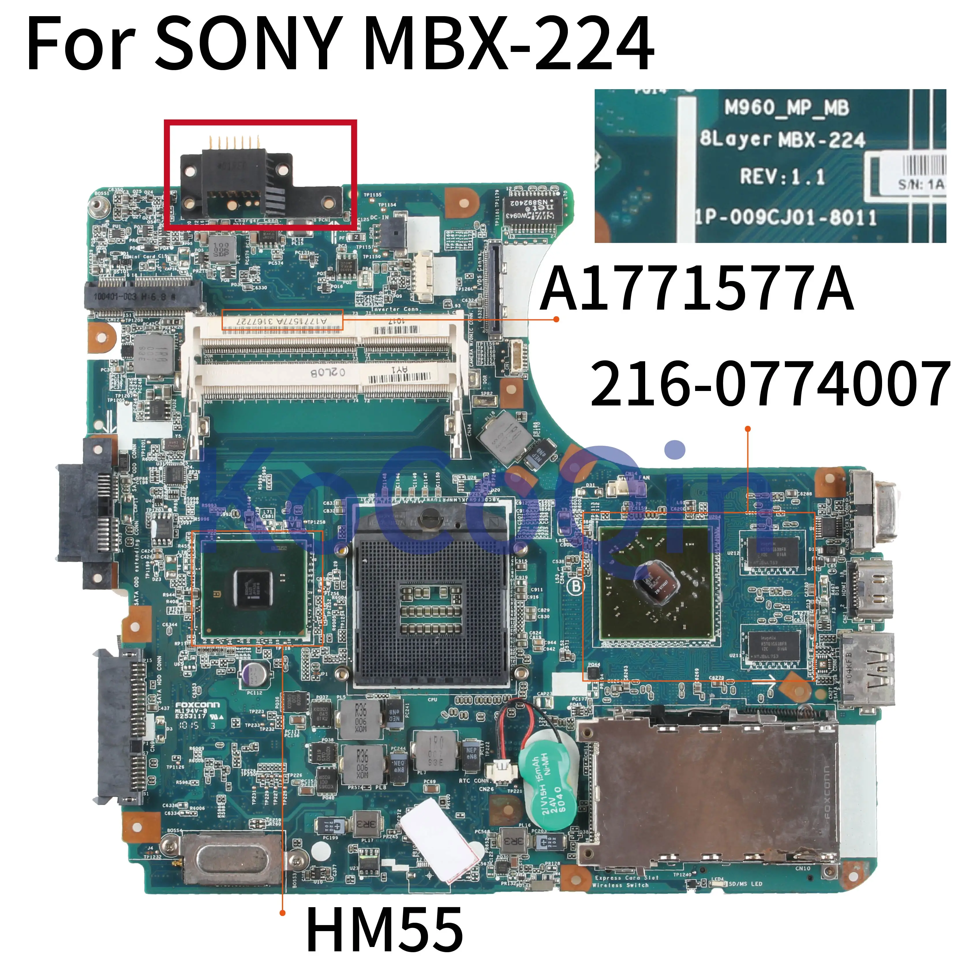 M960 For SONY MBX-224 Laptop Motherboard HM55 DDR3 Notebook Mainboard Tested