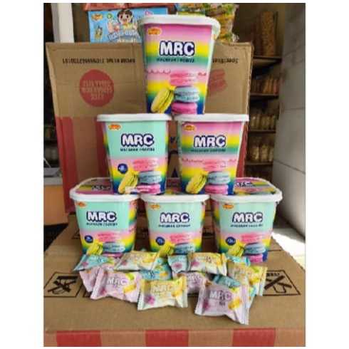 Ranjani MRC Macaron Cookies Toples Aneka Rasa 92gr merupakan cookies mini dengan aneka rasa seperti Stroberi Yogurt, Vanila Mousse, Lemon Cheese Cake, dan Ice Cream Matcha yang di bungkus satuan lagi per setiap rasanya.