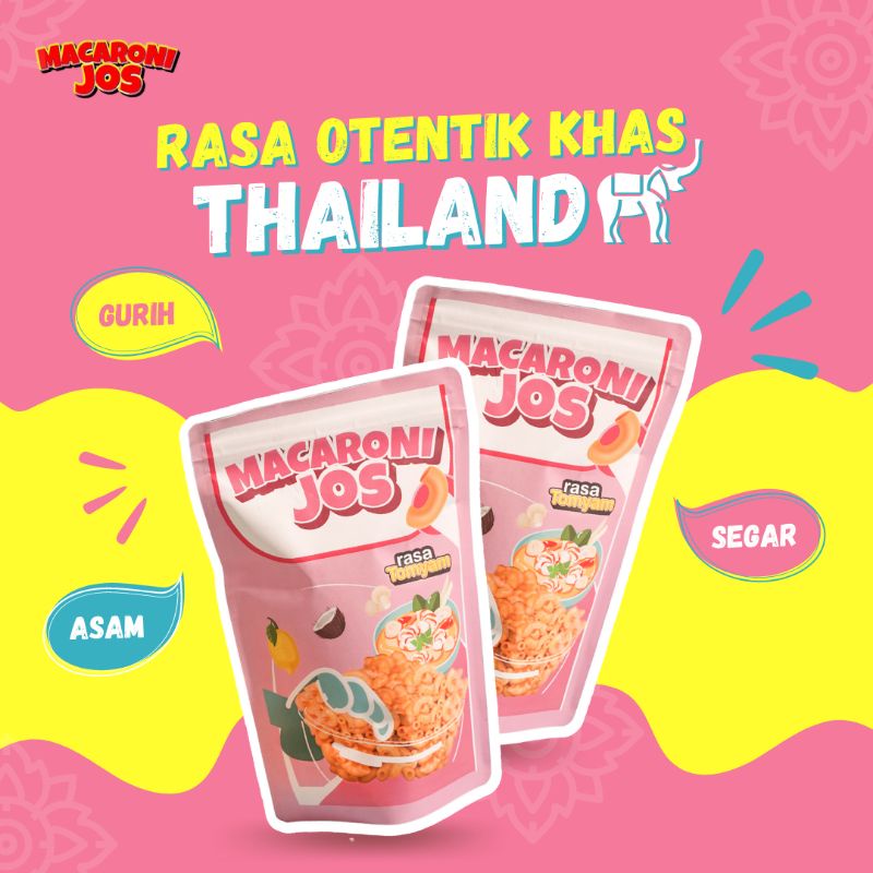 Dibuat dari bahan2 terbaik dengan penuh kasih sayang dan ketulusan demi menciptakan cita rasa yang spesial MACARONI JOS RASA TOMYAM siap untuk menggoyang lidahmu tanpa henti dan bikin ketagihan
